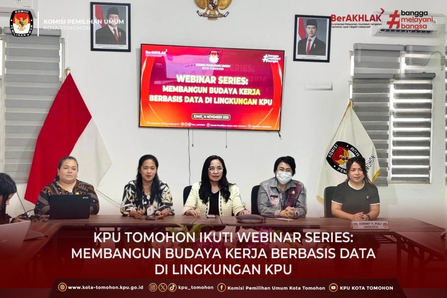 Tomohon, kota-tomohon.kpu.go.id - Pada Jumat, 14 November 2025, KPU Kota Tomohon mengikuti kegiatan Webinar Series bertajuk “Membangun Budaya Kerja Berbasis Data di Lingkungan KPU” yang diselenggarakan secara daring melalui platform Zoom Meeting.