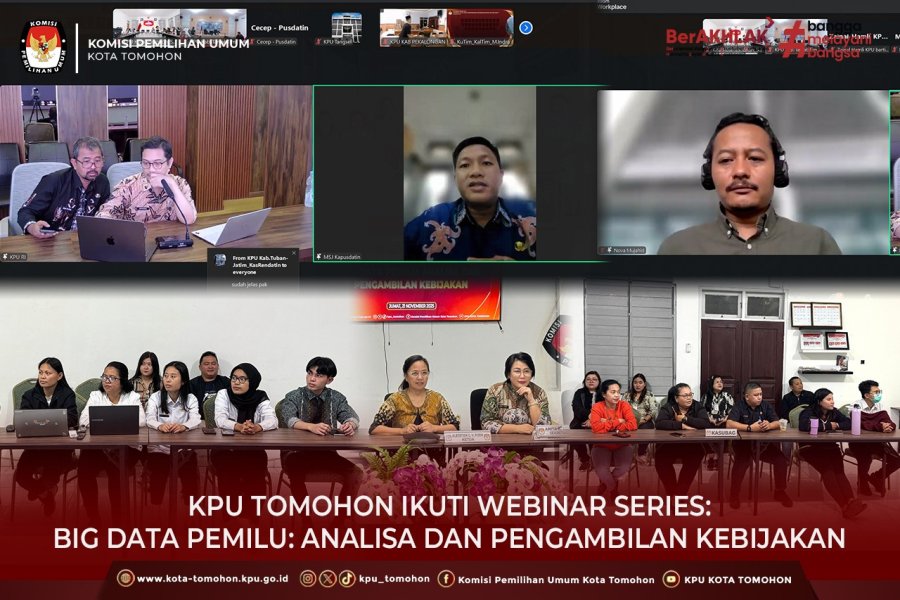 Tomohon, kota-tomohon.kpu.go.id - KPU Kota Tomohon mengikuti Webinar Series bertajuk “Big Data Pemilu: Analisa dan Pengambilan Kebijakan” yang dilaksanakan secara daring melalui Zoom Meeting pada Jumat, 21 November 2025. Kegiatan ini merupakan bagian dari upaya KPU Republik Indonesia dalam meningkatkan kapasitas sumber daya manusia, khususnya dalam bidang pengelolaan dan pemanfaatan data kepemiluan yang semakin kompleks seiring perkembangan teknologi informasi.