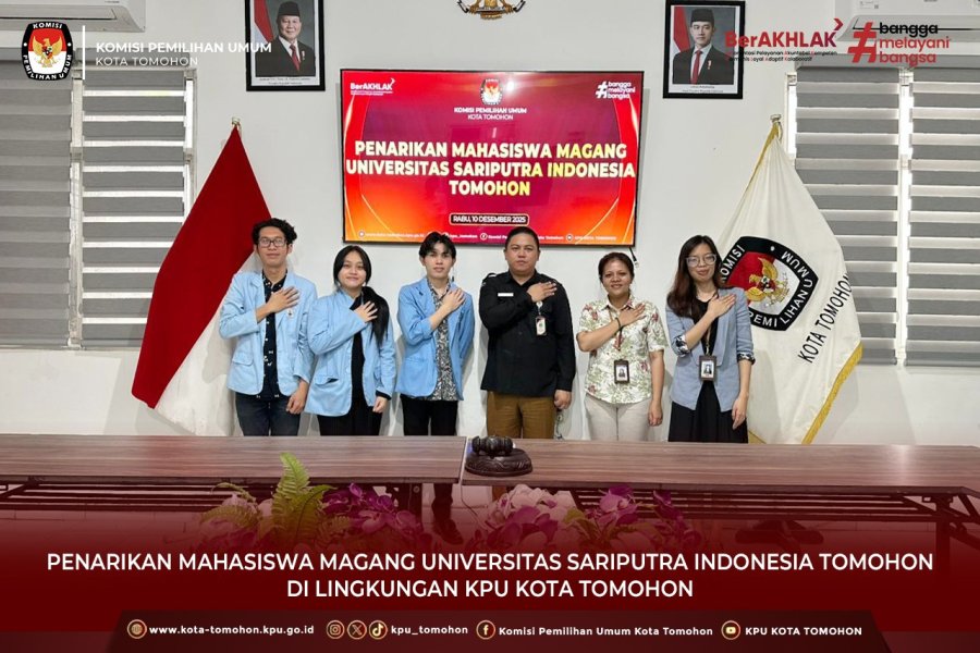 Tomohon, kota-tomohon.kpu.go.id - KPU Kota Tomohon menerima kunjungan dari Fakultas Sains dan Teknologi Universitas Sariputra Indonesia Tomohon (UNSRIT) dalam rangka penarikan mahasiswa magang yang telah menyelesaikan masa tugasnya di Lingkungan Sekretariat KPU Kota Tomohon (10/12/2025).