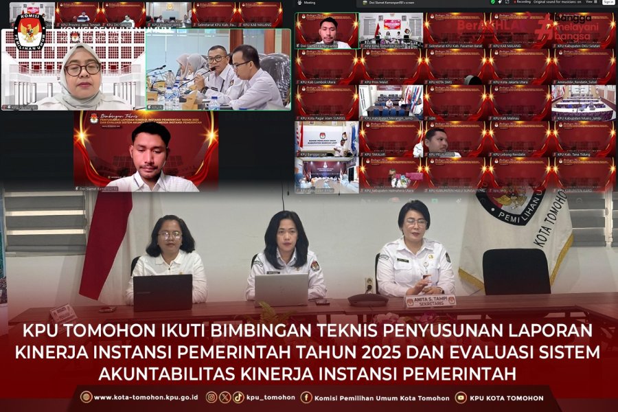 Tomohon, kota-tomohon.kpu.go.id - KPU Kota Tomohon mengikuti Bimbingan Teknis Penyusunan Laporan Kinerja Instansi Pemerintah (LKJIP) Tahun 2025 dan Evaluasi Sistem Akuntabilitas Kinerja Instansi Pemerintah (SAKIP) yang dilaksanakan secara daring melalui Zoom Meeting pada Senin, 29 Desember 2025.