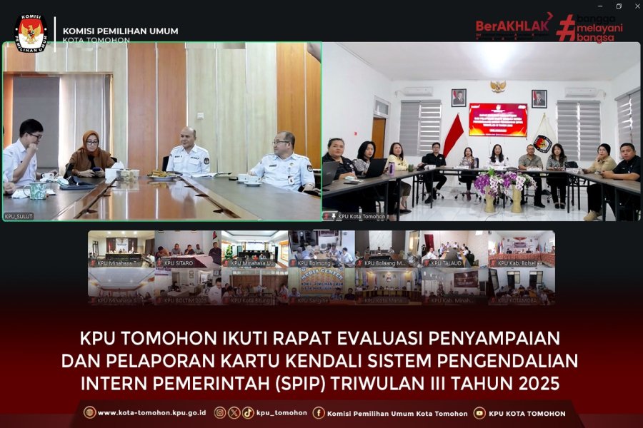KPU Tomohon Ikuti Rapat Evaluasi Penyampaian dan Pelaporan Kartu Kendali Sistem Pengendalian Intern Pemerintah (SPIP) Triwulan III Tahun 2025