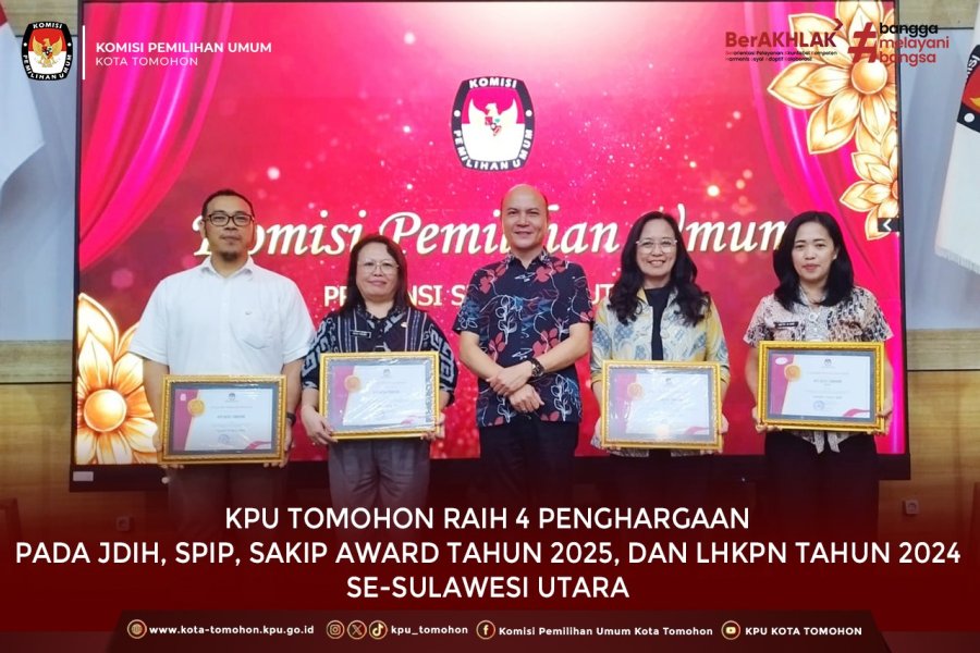 KPU Tomohon Raih 4 Penghargaan pada JDIH, SPIP, SAKIP Award Tahun 2025, dan LHKPN Tahun 2024 se-Sulawesi Utara