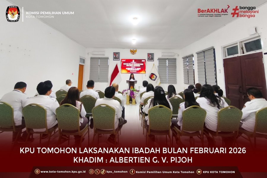 Ibadah Awal Bulan Februari Tahun 2026 diharapkan dapat menjadi landasan spiritual dan moral bagi seluruh jajaran KPU Kota Tomohon dalam melaksanakan program dan kegiatan sepanjang bulan Februari, serta memperkuat sinergi dan kebersamaan dalam mewujudkan visi dan misi KPU sebagai lembaga penyelenggara pemilu yang mandiri, profesional, dan terpercaya.