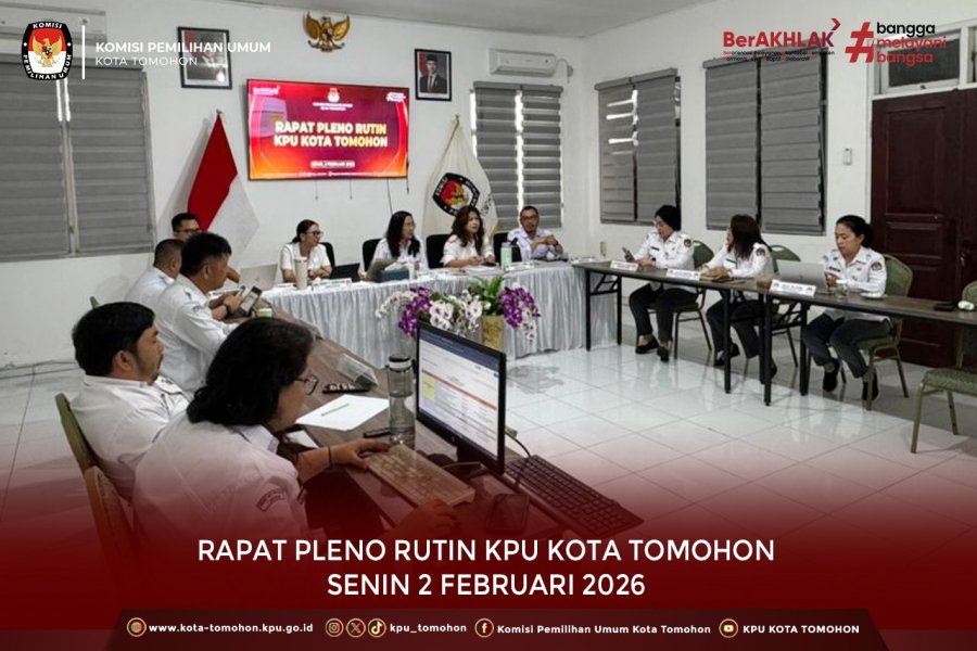 Tomohon, kota-tomohon.kpu.go.id - KPU Kota Tomohon melaksanakan Rapat Pleno Rutin pada Senin 2 Februari 2026, bertempat di Ruang Rapat KPU Kota Tomohon. Rapat ini diikuti oleh Komisioner, dan para Kepala Sub Bagian KPU Kota Tomohon.