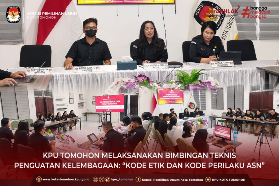 Tomohon, kota-tomohon.kpu.go.id - KPU Kota Tomohon melaksanakan kegiatan Bimbingan Teknis Penguatan Kelembagaan dengan tema “Kode Etik dan Kode Perilaku Aparatur Sipil Negara (ASN)” sebagai upaya memperkuat pemahaman serta komitmen ASN dalam menjalankan tugas dan fungsi secara profesional, berintegritas, dan beretika bertempat di Ruang Rapat KPU Kota Tomohon (4/2/2026).