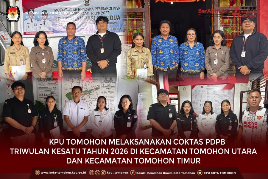 Tomohon, kota-tomohon.kpu.go.id - Komisi Pemilihan Umum (KPU) Kota Tomohon melaksanakan Coklit Terbatas (Coktas) dalam rangka Pemutakhiran Data Pemilih Berkelanjutan (PDPB) Triwulan Kesatu Tahun 2026, pada tanggal 11 s.d 12 Maret 2026 guna menjaga keakuratan data pemilih secara konsisten.