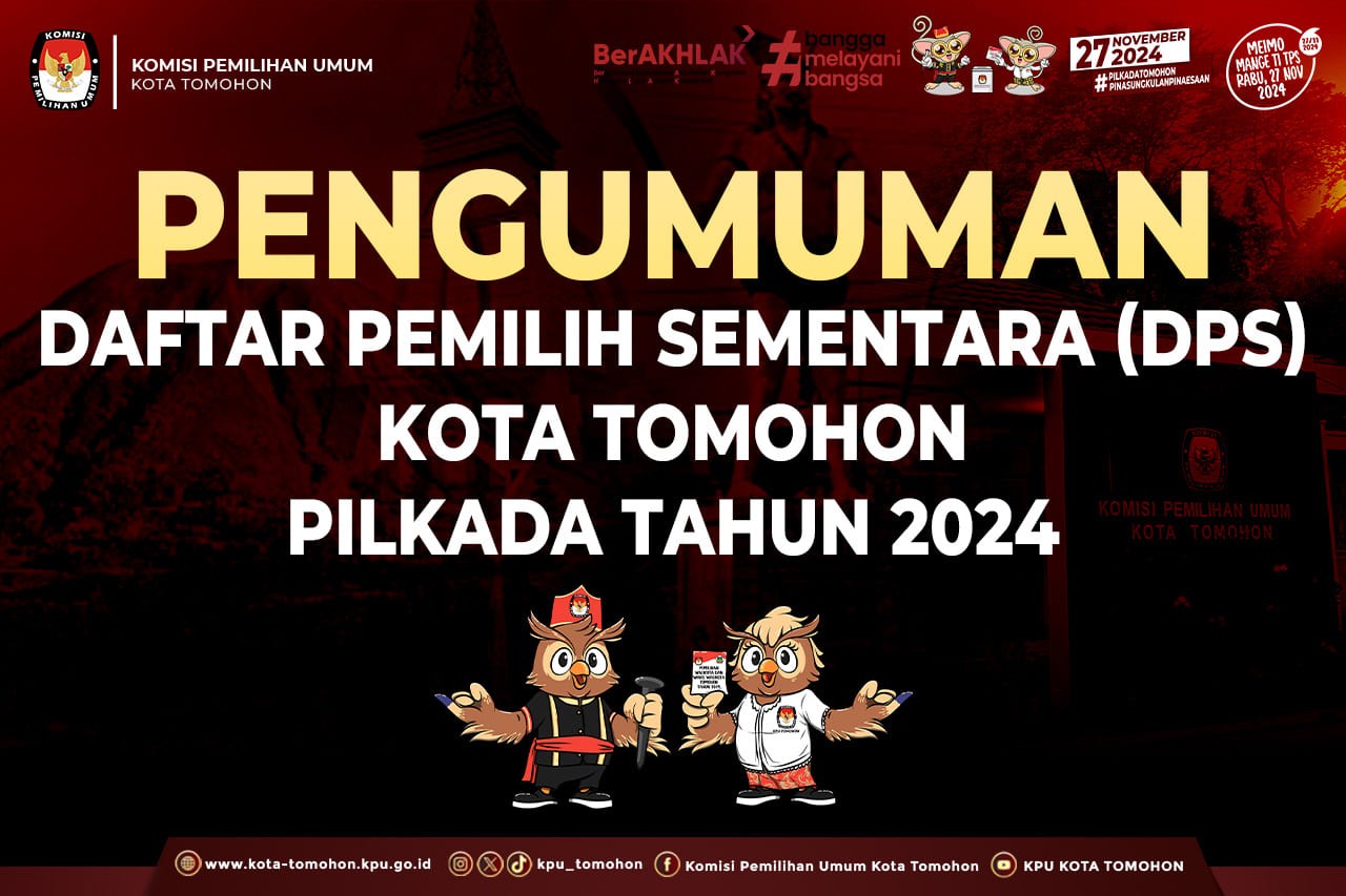 Pengumuman Daftar Pemilih Sementara (DPS) Kota Tomohon Pemilihan Gubernur dan Wakil Gubernur serta Pemilihan Walikota dan Wakil Walikota Tahun 2024