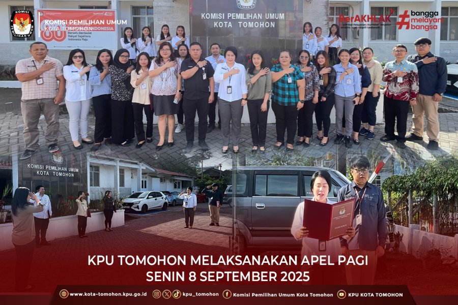 Kegiatan apel pagi ini menjadi salah satu bentuk komitmen KPU Kota Tomohon dalam membangun budaya kerja yang tertib, transparan dan akuntabel.
