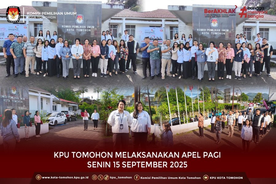 Tomohon, Kota -tomohon.kpu.go.id - KPU Kota Tomohon melaksanakan Apel Pagi Rutin, Senin 15 September 2025 di halaman kantor KPU Kota Tomohon.