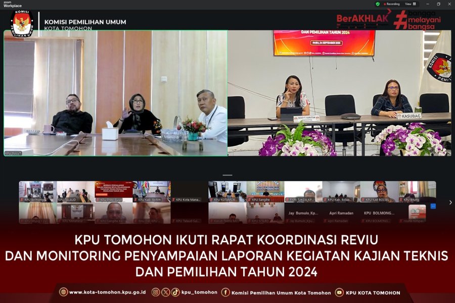 KPU Tomohon Ikuti Rapat Koordinasi Reviu dan Monitoring Penyampaian Laporan Kegiatan Kajian Teknis dan Pemilihan Tahun 2024