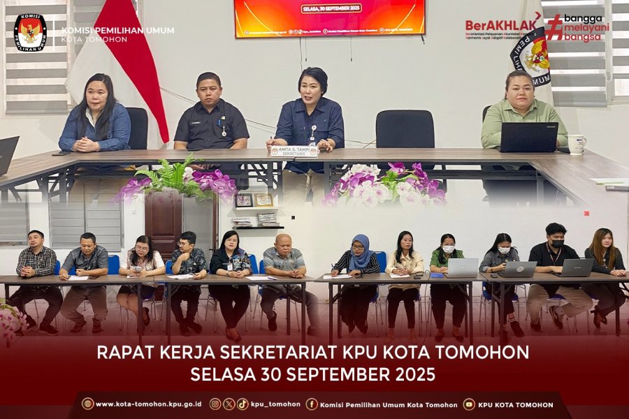 Tomohon, kota-tomohon.kpu.go.id - KPU Kota Tomohon melaksanakan Rapat Kerja Sekretariat pada Selasa, 30 September 2025 bertempat di Ruang Rapat KPU Kota Tomohon. Rapat ini dihadiri oleh seluruh jajaran sekretariat.