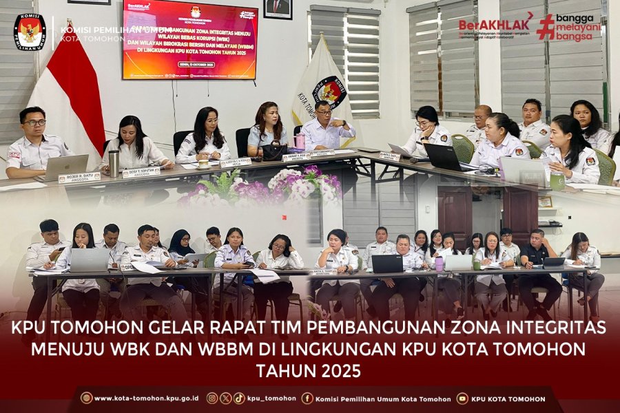 Tomohon, kota-tomohon.kpu.go.id - Komisi Pemilihan Umum (KPU) Kota Tomohon melaksanakan Rapat Tim Pembangunan Zona Integritas pada Senin, 13 Oktober 2025.
