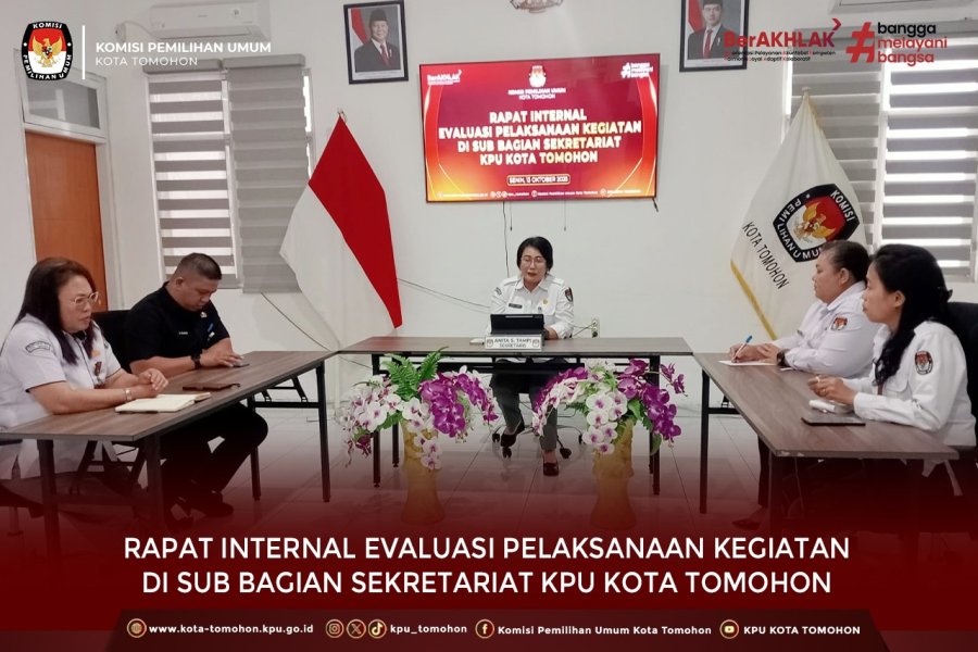 Tomohoon, kota-tomohon.kpu.go.id - Komisi Pemilihan Umum (KPU) Kota Tomohon menggelar Rapat Internal Evaluasi Pelaksanaan Kegiatan di Sub Bagian Sekretariat KPU Kota Tomohon (13/10/2025).