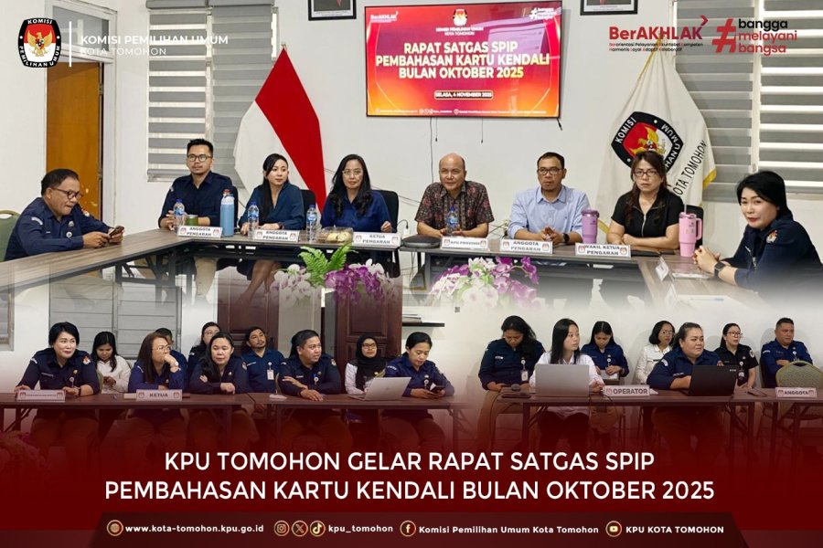 Tomohon, kota-tomohon.kpu.go.id - Komisi Pemilihan Umum (KPU) Kota Tomohon melaksanakan rapat rutin Satuan Tugas Sistem Pengendalian Intern Pemerintah (Satgas SPIP) pada Selasa, 4 November 2025, bertempat di Ruang Rapat KPU Kota Tomohon.