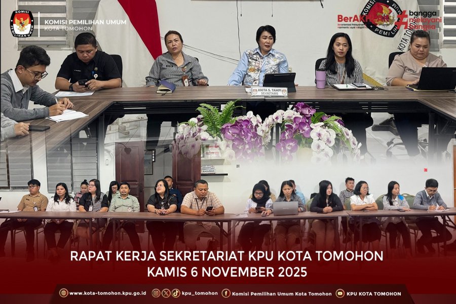 Tomohon, kota-tomohon.kpu.go.id - KPU Kota Tomohon melaksanakan Rapat Kerja Sekretariat pada Kamis, 6 November 2025 bertempat di Ruang Rapat KPU Kota Tomohon. Rapat ini dihadiri oleh seluruh jajaran sekretariat KPU Kota Tomohon.