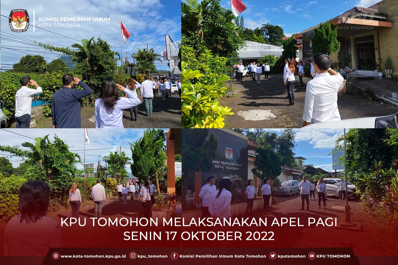 Tomohon, kota-tomohon.kpu.go.id - Senin (17/10) Komisioner, Sekretaris, seluruh staf serta siswa PKL melaksanakan apel pagi rutin bertempat dihalaman Kantor KPU Kota Tomohon yang dipimpin oleh Kadiv Hukum dan Pengawasan Jacobus Wowor mulai pukul 08.00 WITA.