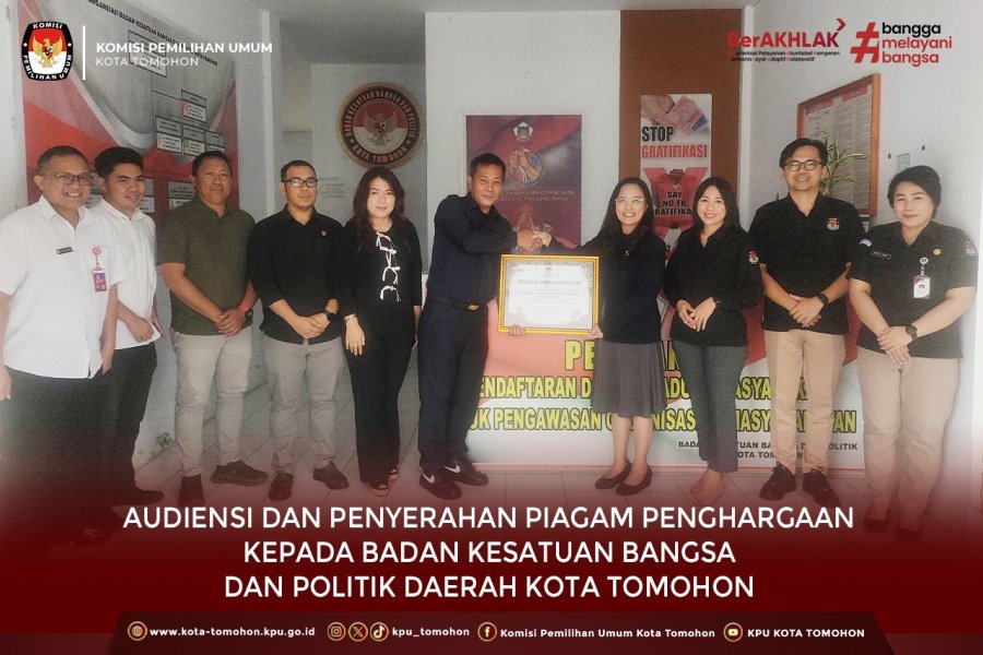 Audiensi dan Penyerahan Piagam Penghargaan kepada Badan Kesatuan Bangsa dan Politik Daerah Kota Tomohon