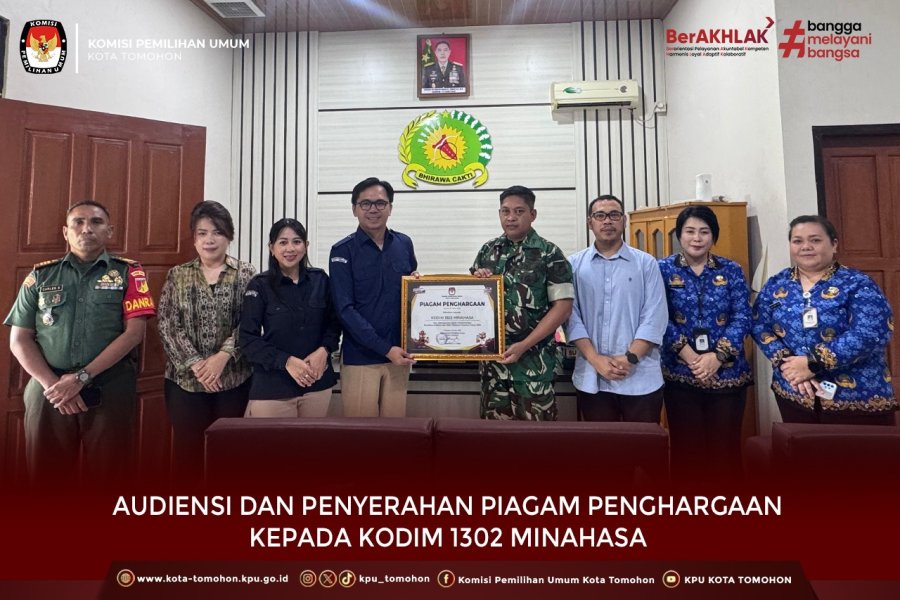 Selanjutnya, sebagai bentuk apresiasi atas peran serta, dukungan dan kerja sama yang baik, KPU Kota Tomohon memberikan Piagam Penghargaan.