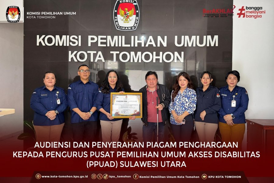 Audiensi dan Penyerahan Piagam Penghargaan kepada Pengurus Pusat Pemilihan Umum Akses Disabilitas (PPUAD) Sulawesi Utara