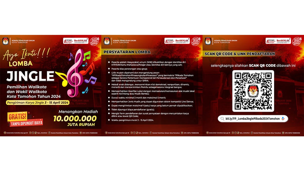 Jangan sampai kelewatan ikuti Lomba Jingle Pemilihan Walikota dan Wakil Walikota Kota Tomohon Tahun 2024.