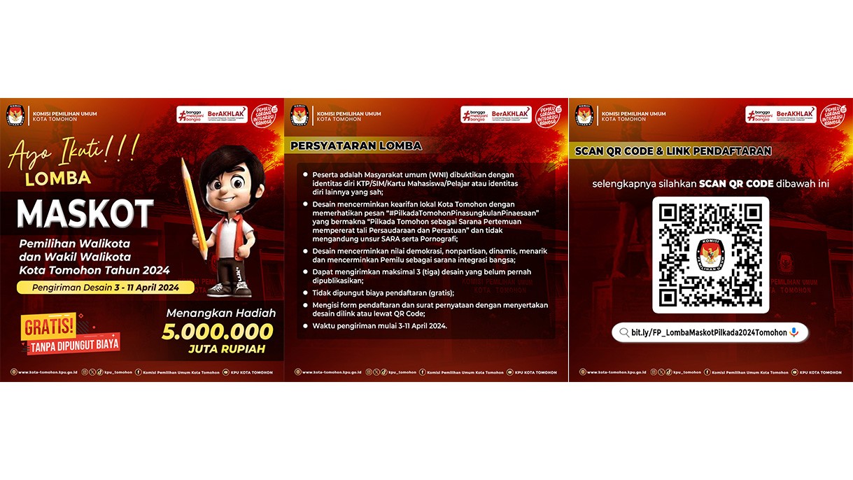 Jangan sampai kelewatan ikuti Lomba Maskot Pemilihan Walikota dan Wakil Walikota Kota Tomohon Tahun 2024.
