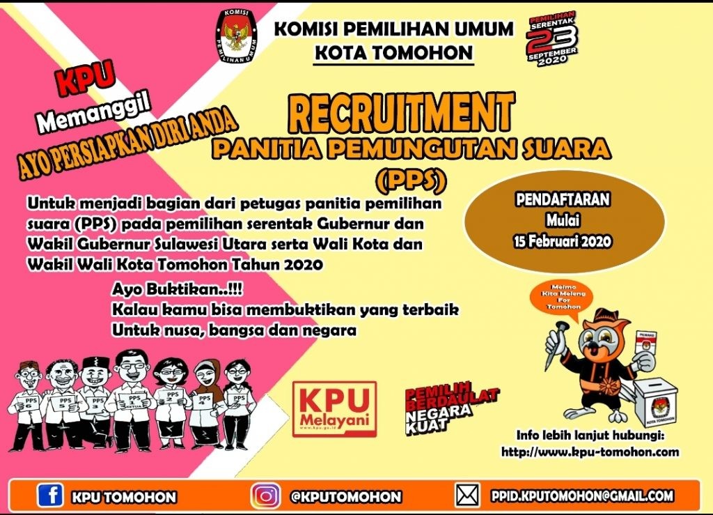 Ayo persiapkan diri anda. KPU Tomohon Membuka Rekrutmen Panitia Pemungutan Suara (PPS) Pilkada 2020