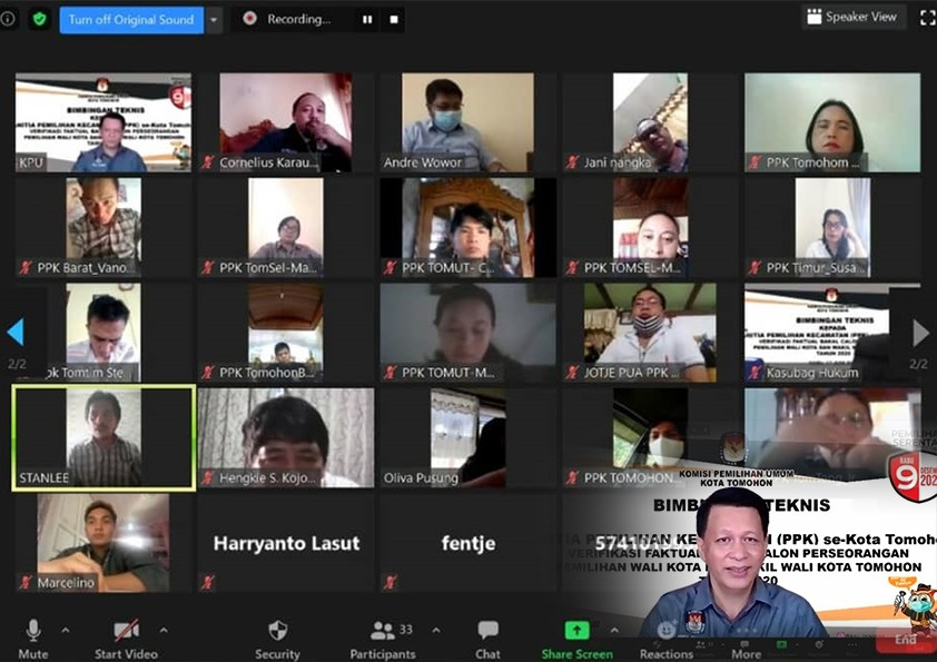 Komisi Pemilihan Umum (KPU) Kota Tomohon menggelar Bimbingan Teknis (Bimtek) verifikasi faktual dukungan bakal pasangan calon perseorangan pemilihan Wali Kota dan Wakil Wali Kota Tomohon 2020. Bimtek ini dilaksanakan secara daring bersama Panitia Pemilihan Kecamatan (PPK) se-Kota Tomohon.