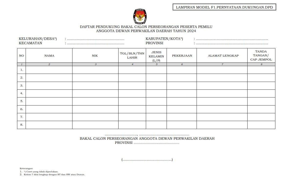 Formulir Daftar Pendukung Bakal Calon Perseorangan DPD