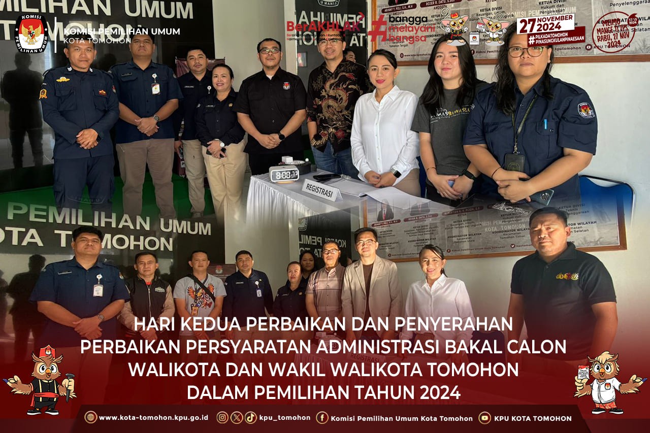 Hari Kedua Perbaikan dan Penyerahan Perbaikan Persyaratan Administrasi Bakal Calon Walikota dan Wakil Walikota Tomohon dalam Pemilihan Tahun 2024