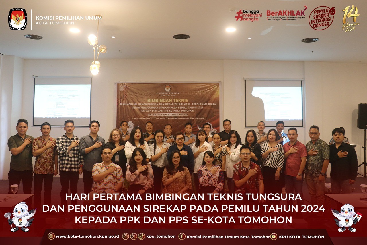 Hari Pertama Bimbingan Teknis Tungsura dan Penggunaan Sirekap Pada Pemilu Tahun 2024 kepada PPK se-Kota Tomohon