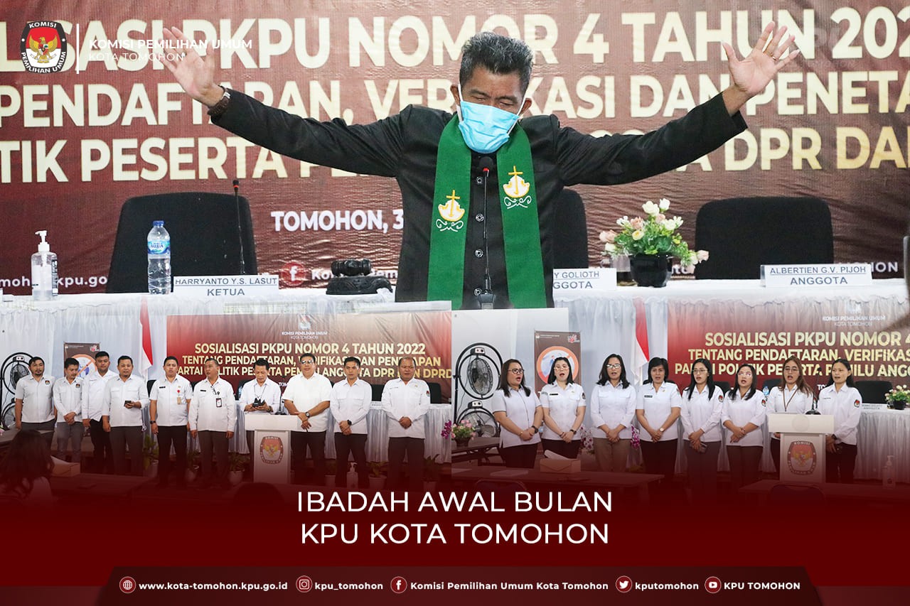 Tomohon, kota-tomohon.kpu.go.id - KPU Kota Tomohon melaksanakan Ibadah Awal Bulan, bertempat di Kantor KPU Kota Tomohon (1/8). Ibadah diikuti oleh komisioner, sekretaris beserta seluruh jajaran sekretariat. Ibadah dipimpin oleh Pdt. Andre Izaak, M.Th yang merupakan pendeta di jemaat GMIM Maranatha Kakaskasen.