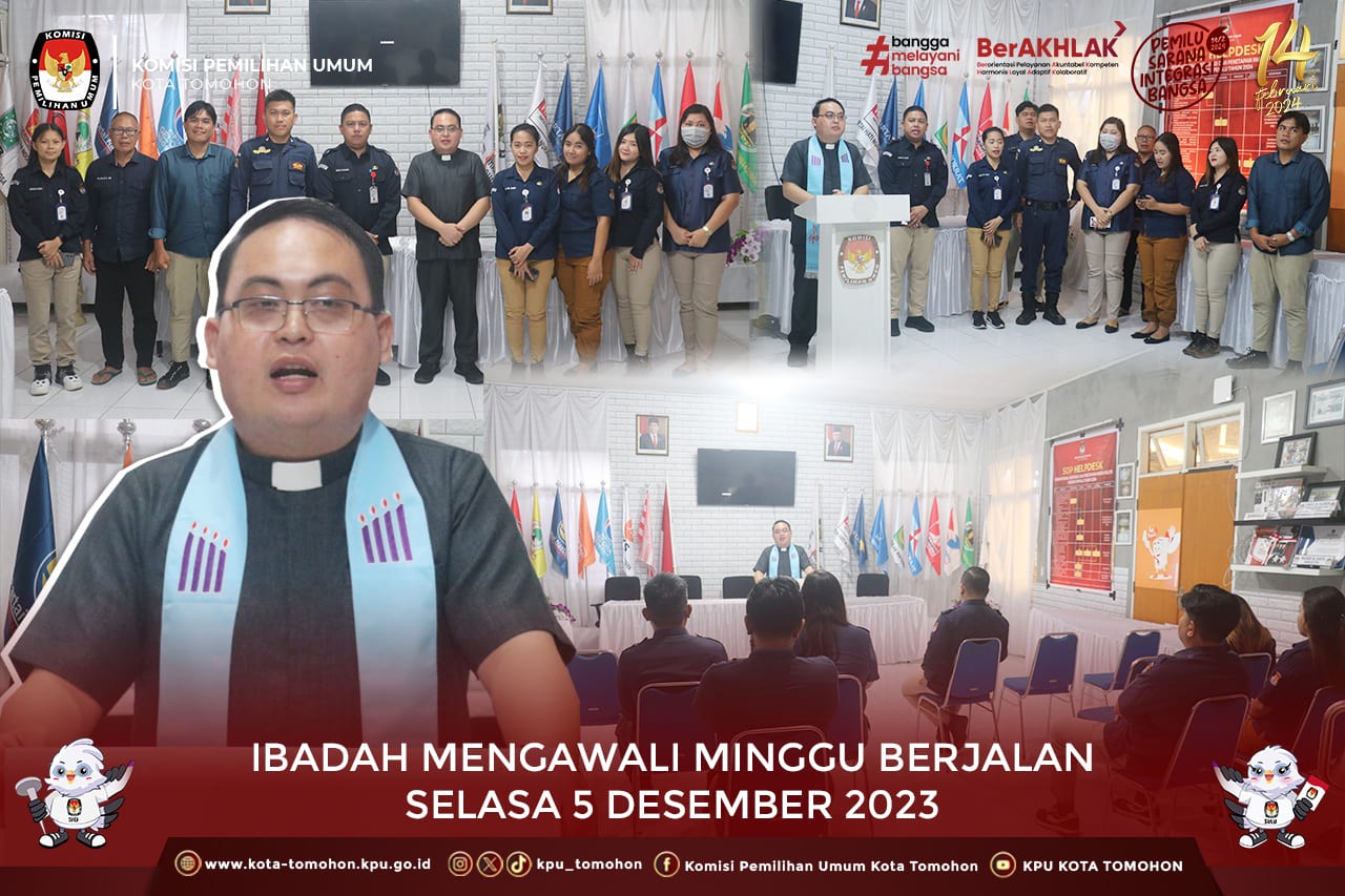 Tomohon, kota-tomohon.kpu.go.id - KPU Kota Tomohon melaksanakan Ibadah mengawali minggu berjalan, bertempat di Kantor KPU Kota Tomohon (5/12). Ibadah diikuti oleh komisioner, sekretaris beserta seluruh jajaran sekretariat. Ibadah dipimpin oleh Bapak Pdt. Richo P. C. Wenas, S.Th.