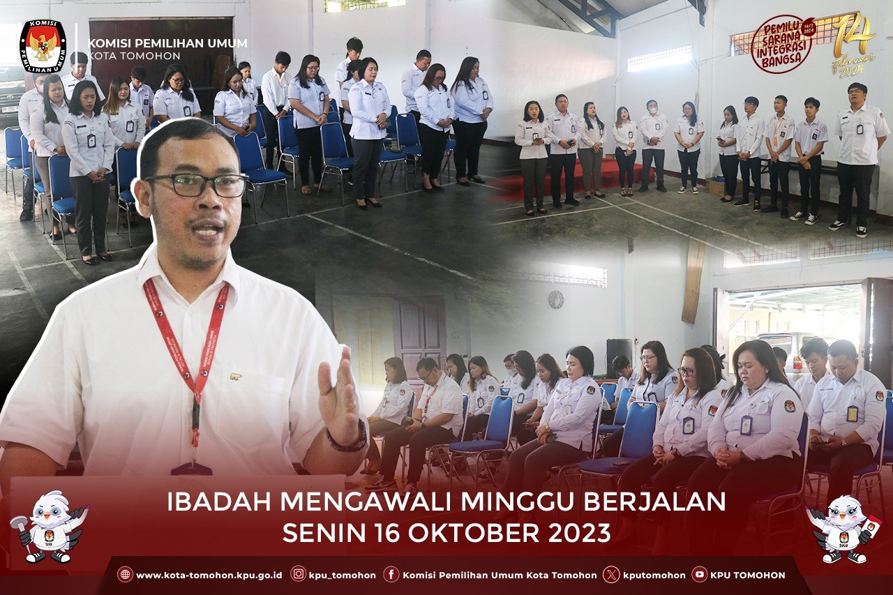 Tomohon, kota-tomohon.kpu.go.id - KPU Kota Tomohon melaksanakan Ibadah mengawali minggu berjalan, bertempat di Kantor KPU Kota Tomohon (16/10). Ibadah diikuti oleh komisioner, sekretaris beserta seluruh jajaran sekretariat. Ibadah dipimpin oleh Ketua Divisi Hukum dan Pengawasan Youne Y. Simangunsong.