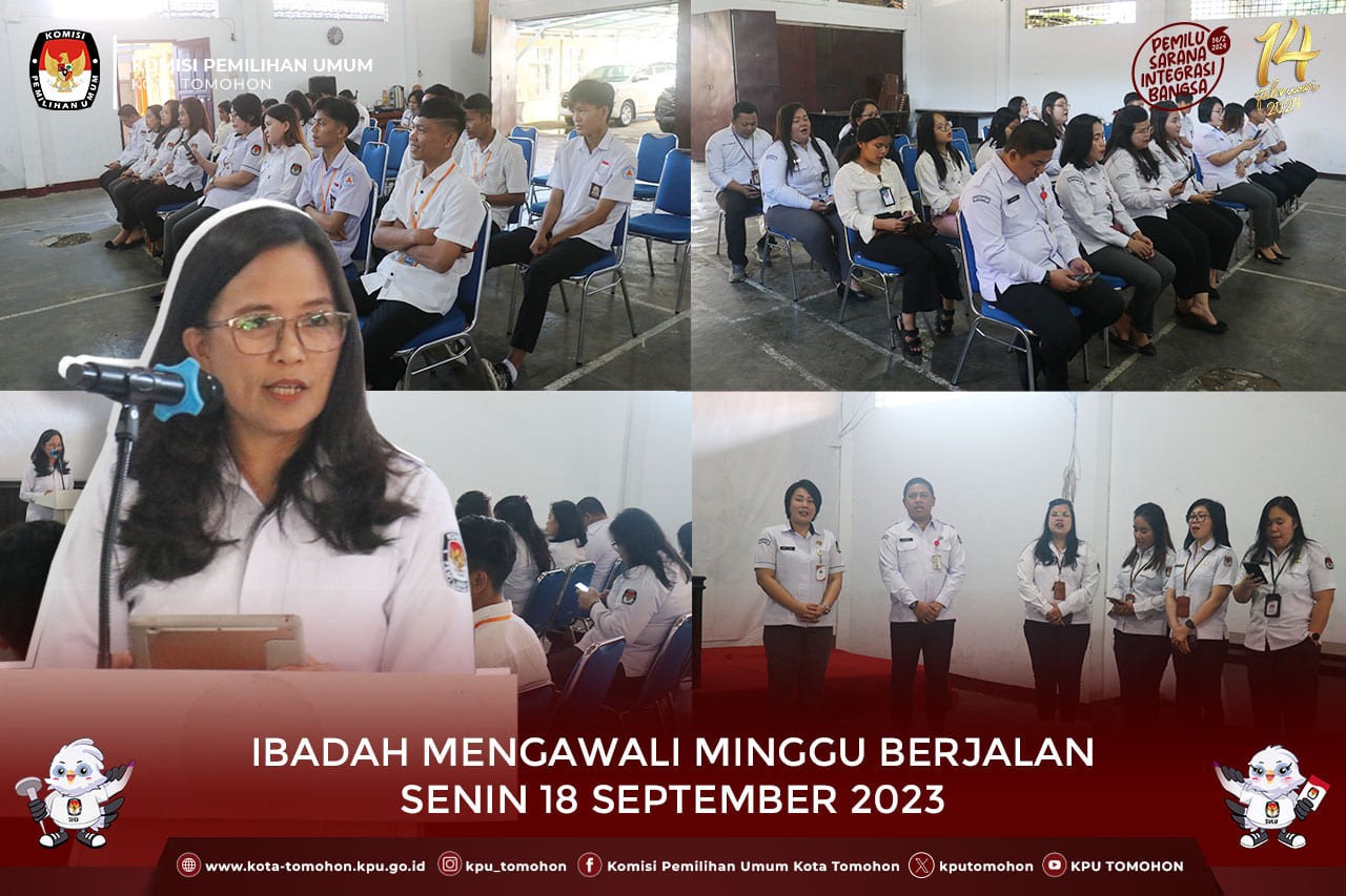 Tomohon, kota-tomohon.kpu.go.id - KPU Kota Tomohon melaksanakan Ibadah mengawali minggu berjalan, bertempat di Kantor KPU Kota Tomohon (18/9). Ibadah diikuti oleh komisioner, sekretaris beserta seluruh jajaran sekretariat. Ibadah dipimpin oleh Ketua KPU Kota Tomohon Albertien G. V. Pijoh.