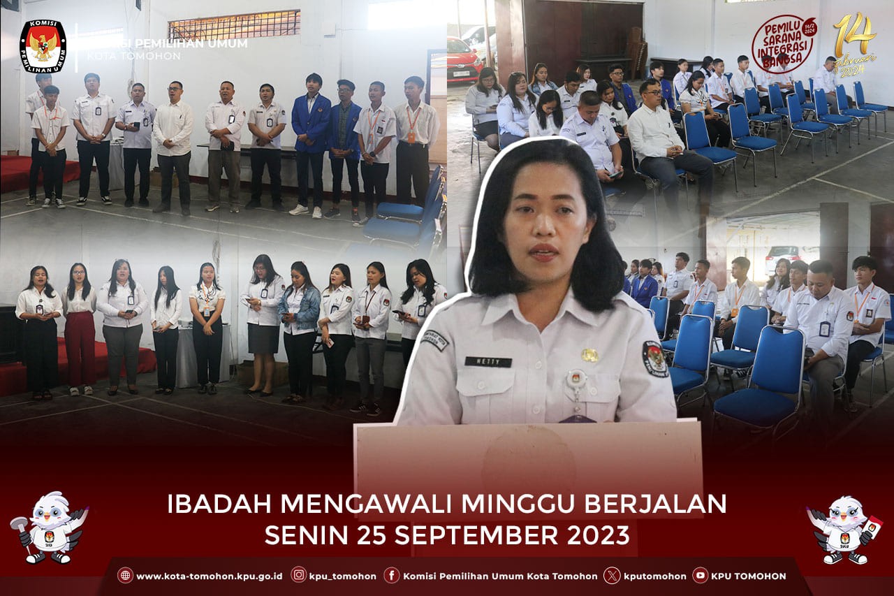 Tomohon, kota-tomohon.kpu.go.id - KPU Kota Tomohon melaksanakan Ibadah mengawali minggu berjalan, bertempat di Kantor KPU Kota Tomohon (25/9). Ibadah diikuti oleh komisioner, sekretaris beserta seluruh jajaran sekretariat. Ibadah dipimpin oleh Kepala Sub Bagian Perencanaan, Data dan Informasi Hetty M. Kabi.