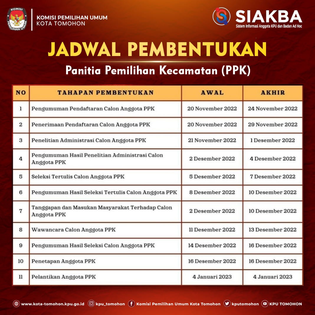 Jadwal Pembentukan Panitia Pemilihan Kecamatan (PPK)