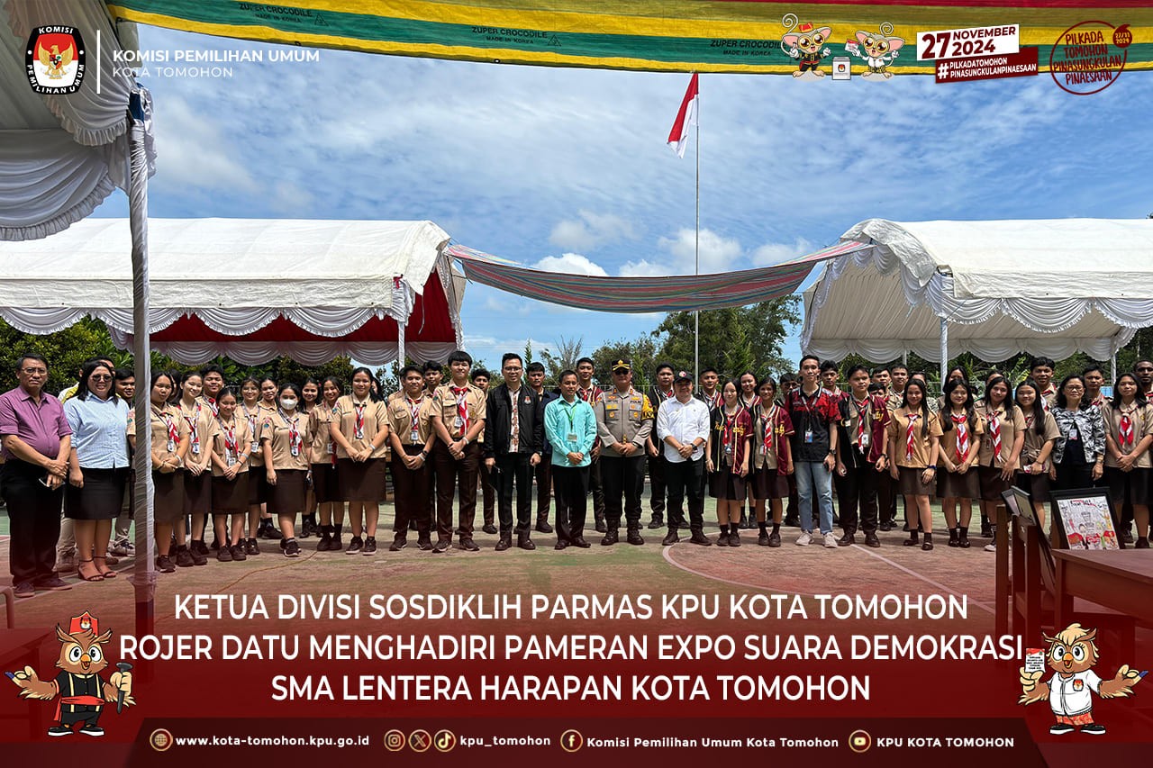 Tomohon, kota-tomohon.kpu.go.id - Ketua Divisi Sosdikli Parmas KPU Kota Tomohon Rojer R. Datu menghadiri Pamaran Expo Suara Demokasi SMA Lentera Harapan Tomohon, di SMA Lentera Harapan Tomohon, Jumat 26/7.