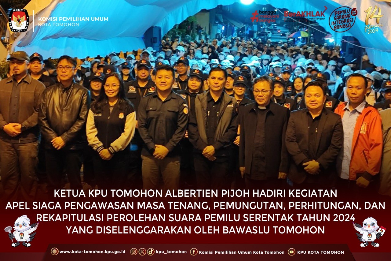Ketua KPU Tomohon Albertien Pijoh Hadiri Kegiatan Apel Siaga Pengawasan Masa Tenang, Pemungutan, Perhitungan, dan Rekapitulasi Perolehan Suara Pemilu Serentak Tahun 2024