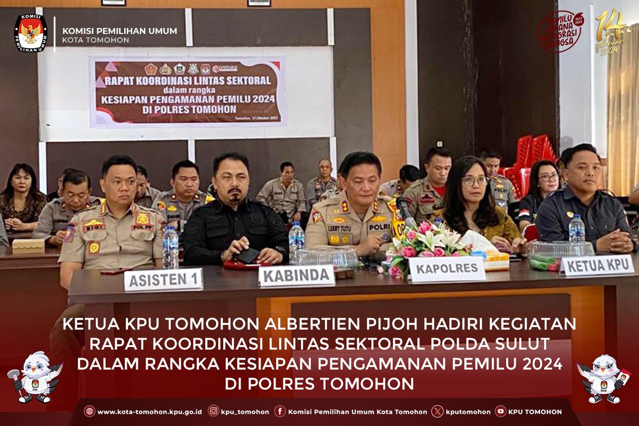 Ketua KPU Tomohon Albertien Pijoh Hadiri Kegiatan Rapat Koordinasi Lintas Sektoral Polda Sulut dalam rangka Kesiapan Pengamanan Pemilu 2024