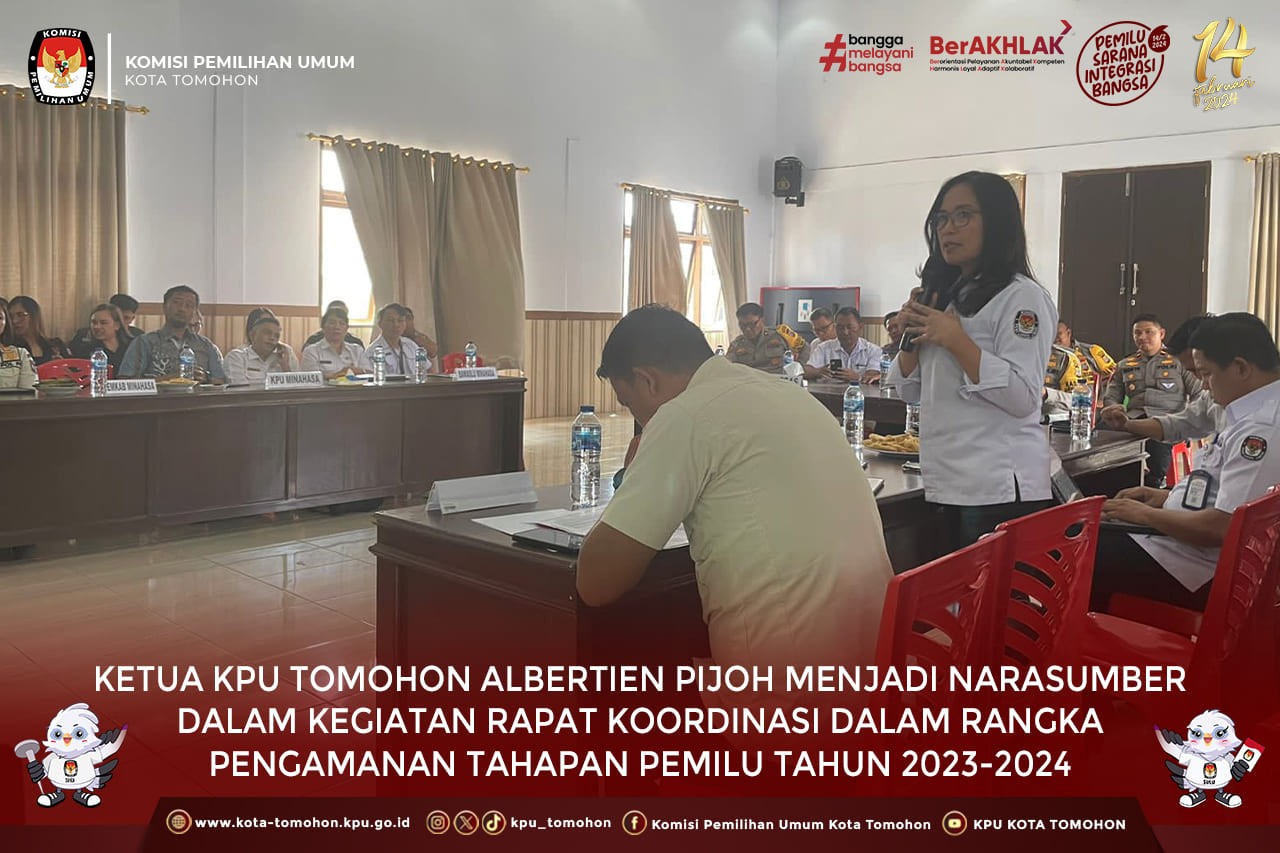 Ketua KPU Tomohon Albertien Pijoh Menjadi Narasumber dalam kegiatan Rapat Koordinasi dalam rangka Pengamanan Tahapan Pemilu Tahun 2023-2024