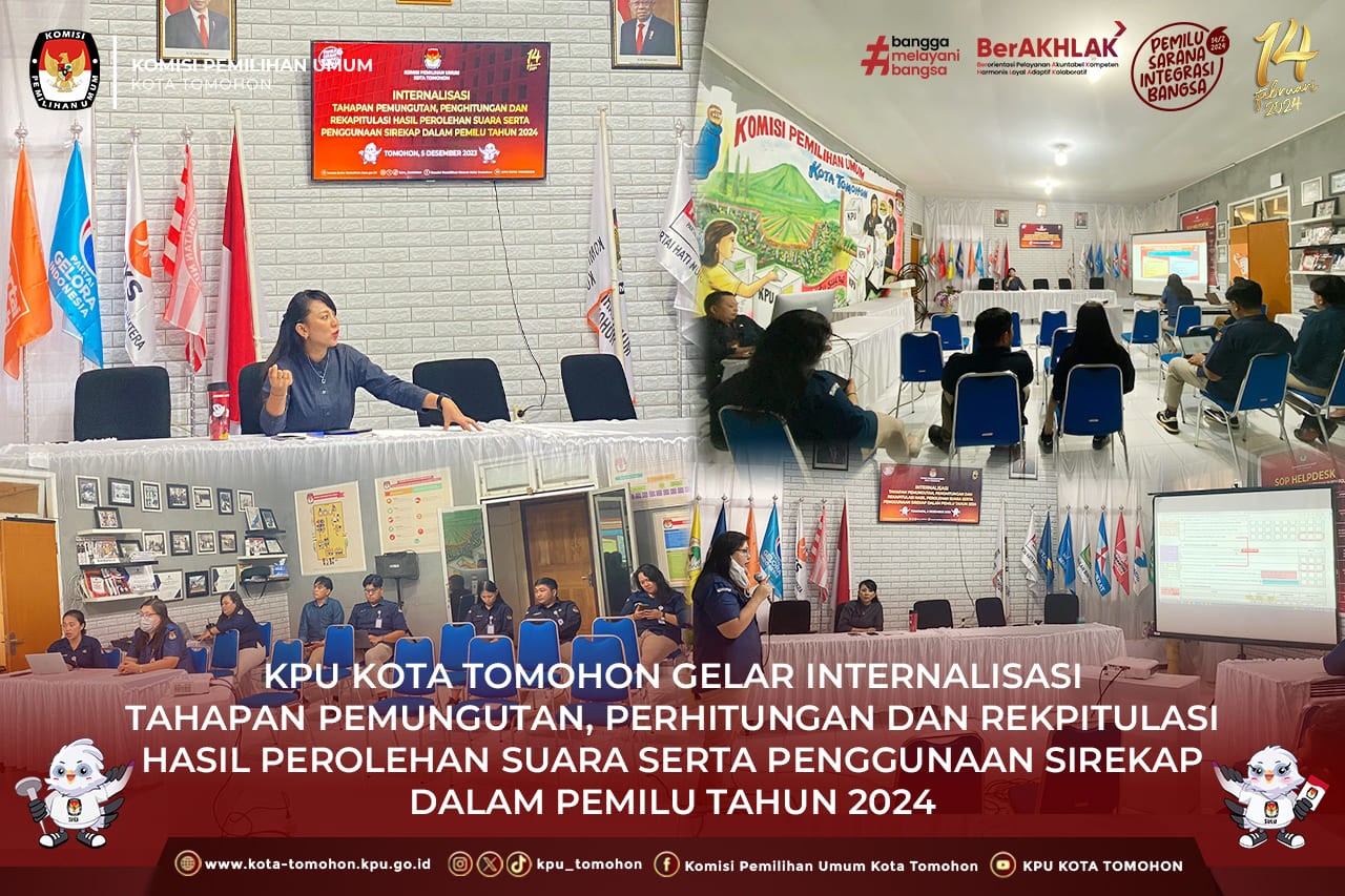 KPU Kota Tomohon Gelar Internalisasi Tahapan Pemungutan, Perhitungan dan Rekapitulasi Hasil Perolehan Suara serta Penggunaan SIREKAP dalam Pemilu Tahun 2024