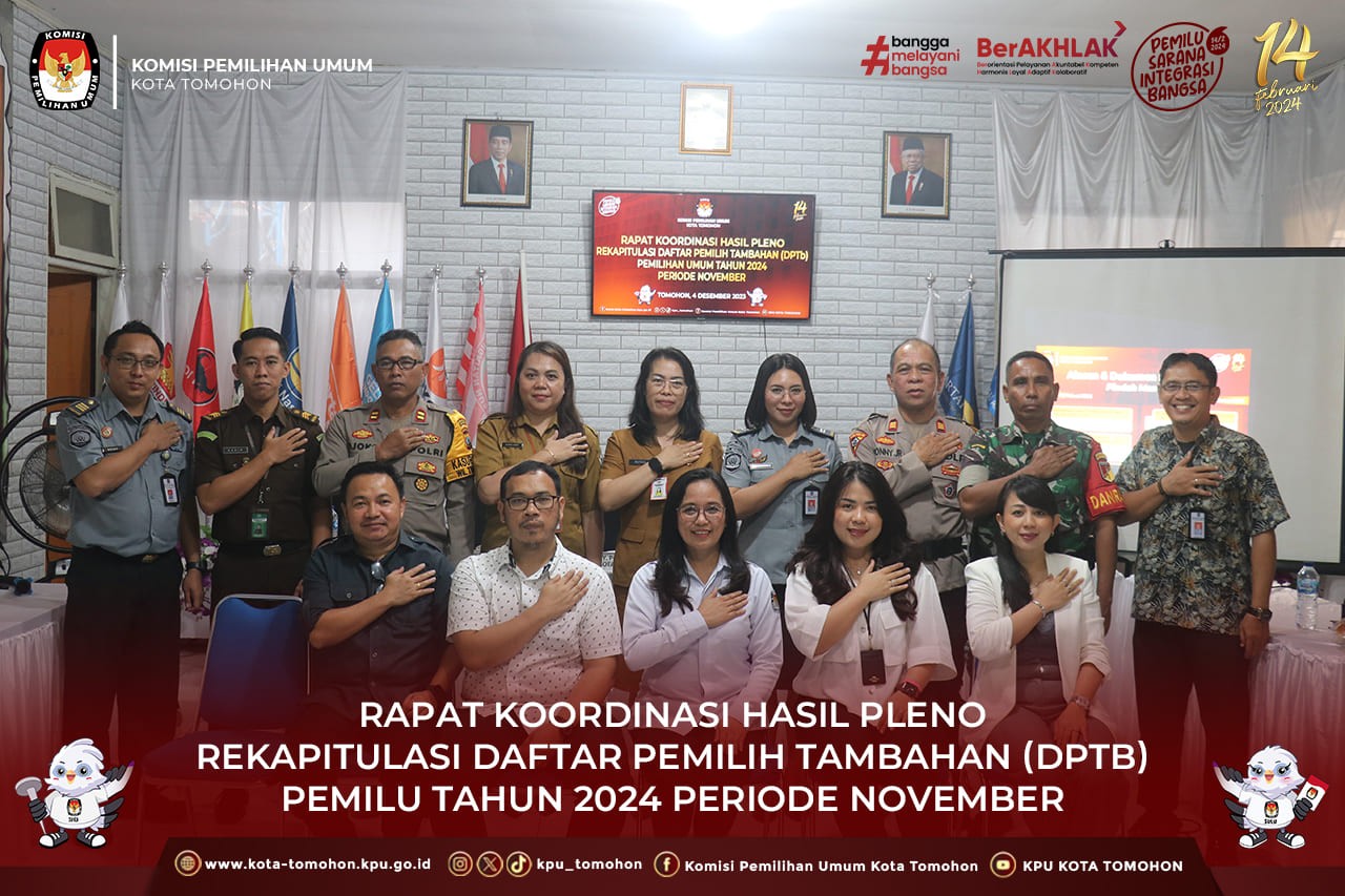KPU Kota Tomohon Gelar Rapat Koordinasi Hasil Pleno Rekapitulasi Daftar Pemilih Tambahan (DPTb) Pemilu Tahun 2024 Periode November