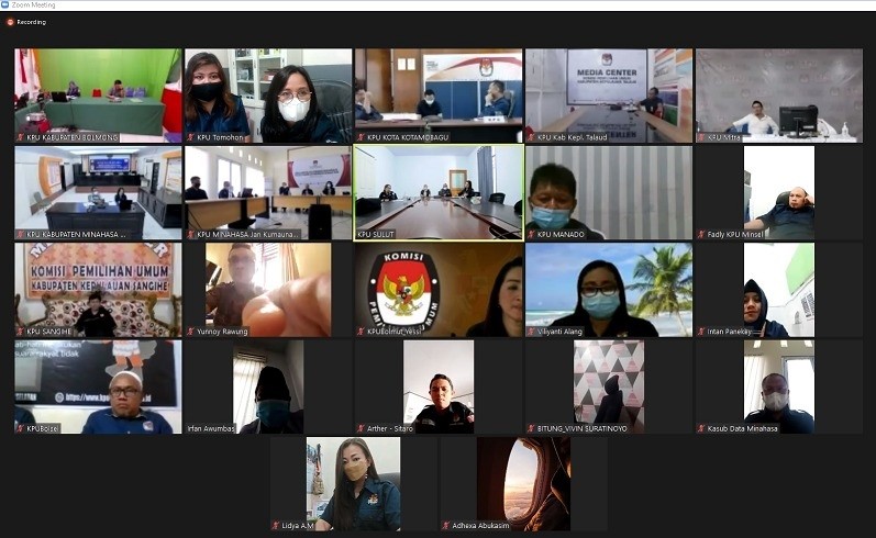 Tomohon, 22 Juni 2021. KPU Kota Tomohon mengikuti Rapat Penyusunan Laporan Kinerja yang di laksanakan oleh KPU Provinsi. Rapat di buka langsung oleh Ketua Divisi Perencanaan Data dan Informasi KPU Sulawesi Utara Lanny Anggriany Ointu, SE. Rapat dihadiri oleh Kepala Divisi Perencanaan, Data dan Informasi dan Kepala Sub Bagian Program dan Data di 15 kabupaten/kota.