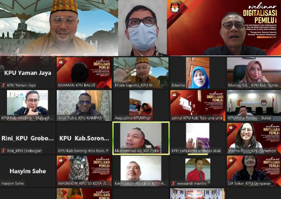Rabu, 22 September 2021. KPU Kota Tomohon dihadiri oleh komisioner Albertien G Vierna Pijoh mengikuti Webinar Digitalisasi Pemilu Seri 1 yang diselenggarakan oleh KPU RI dengan Tema "Teknologi Informasi dan Komunikasi dama Menyongsong Pemilu dan Pemilihan di Era New Normal" Subtema "Pengenalan Sejarah Internet, Dampak Perubahan Kehidupan dan Pemilu 2024" secara daring. Webinar ini dibuka Langsung oleh Ketua KPU RI Ilham Saputra, dilanjutkan arahan dari Anggota KPU RI Viryan dan Pakar Ahli IT Marsudi Wahyu Sebagai Narsumber.