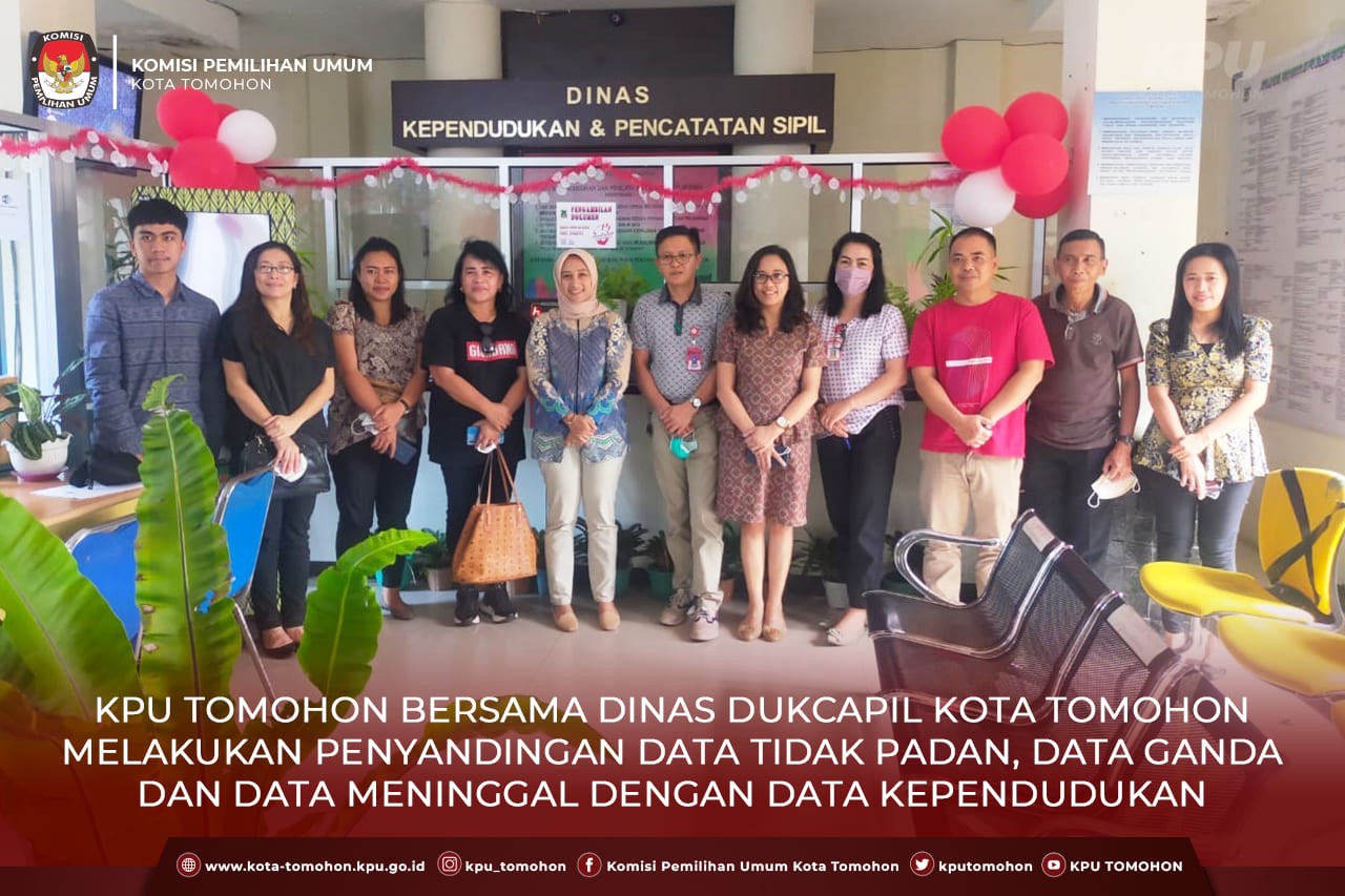 KPU Tomohon Bersama Dinas Dukcapil Kota Tomoho Melakukan Penyandingan Data Tidak Padan, Data Ganda dan Data Meninggal dengan Data Kependudukan