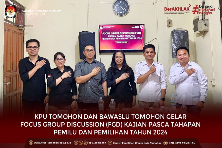 Tomohon, kota-tomohon.kpu.go.id – KPU Kota Tomohon melaksanakan kegiatan Focus Group Discussion (FGD) Kajian Pasca Tahapan Pemilu dan Pemilihan Tahun 2024 yang dilaksanakan di Kantor Bawaslu Kota Tomohon pada Rabu, 30 Juli 2025.