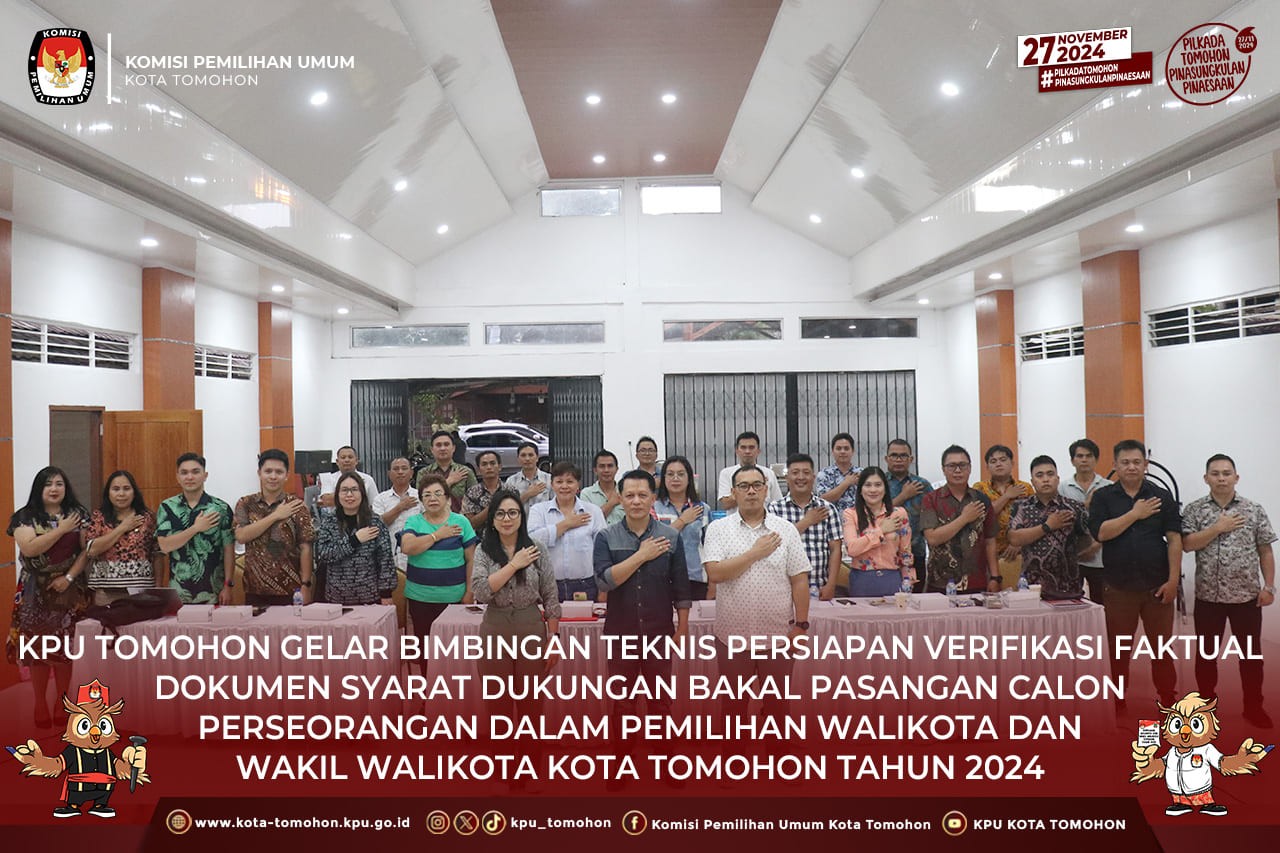 KPU Tomohon Gelar Bimbingan Teknis Persiapan Verifikasi Faktual Dokumen Syarat Dukungan Bakal Pasangan Calon Perseorangan Dalam Pemilihan Walikota dan Wakil Walikota Kota Tomohon Tahun 2024