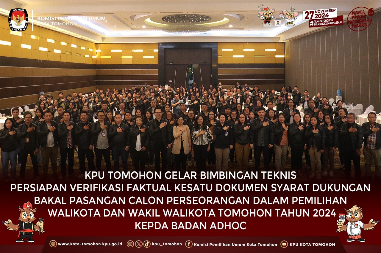 KPU Tomohon Gelar Bimtek Persiapan Verifikasi Faktual Kesatu Dokumen Syarat Dukungan Bapaslon Perseorangan dalam Pemilihan Walikota dan Wakil Walikota Tomohon Tahun 2024 kepada Badan Adhoc