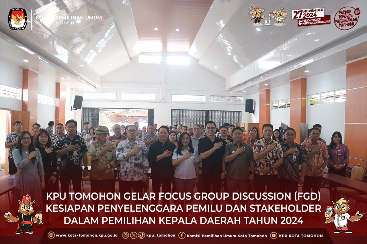 Tomohon, kota-tomohon.kpu.go.id - KPU Tomohon Gelar Focus Group Discussion (FGD) Kesiapan Penyelenggara Pemilu dan Stakeholder Tingkat Kecamatan dalam Pemilihan Kepala Daerah Tahun 2024, Kamis 25/07/2024 bertempat di Aula Kantor KPU Kota Tomohon.