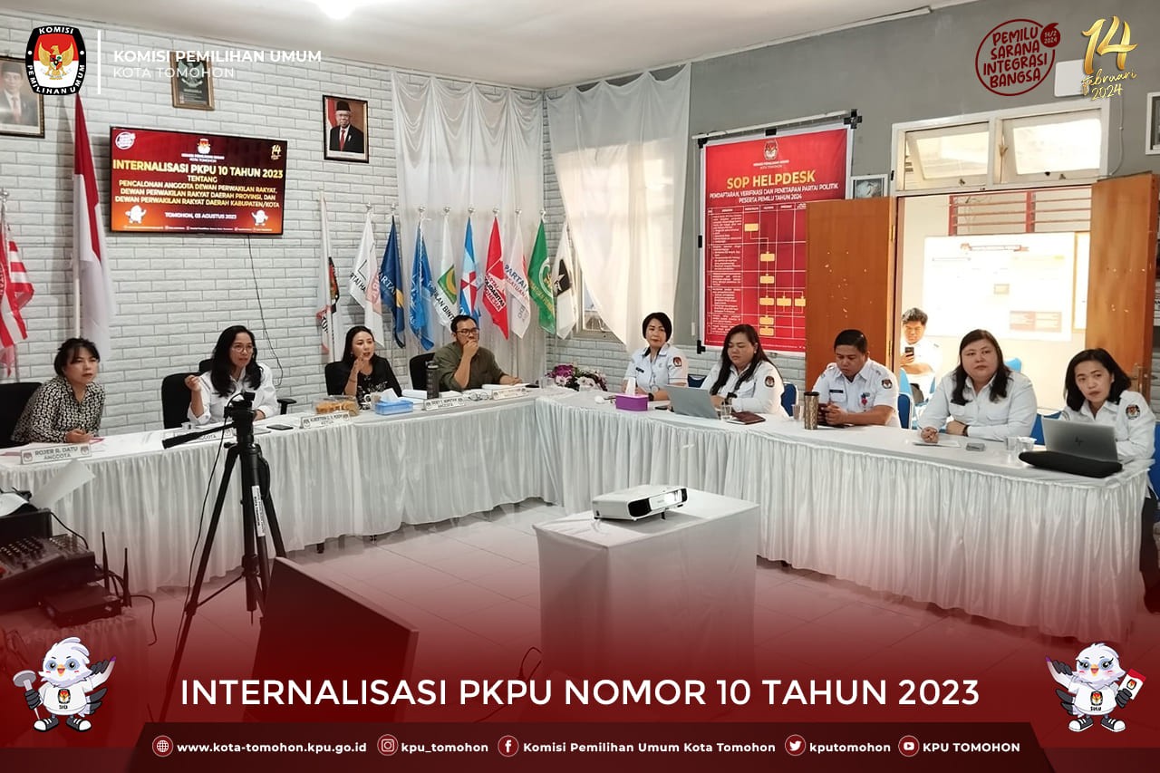 Tomohon, kota-tomohon.kpu.go.id - KPU Kota Tomohon melaksanakan Rapat Internalisasi PKPU 10 Tahun 2023 tentang Pencalonan Anggota Dewan Perwakilan Rakyat, Dewan Perwakilan Rakyat Daerah Provinsi, dan Dewan Perwakilan Rakyat Daerah Kabupaten/Kota, Kamis 03/08/23.